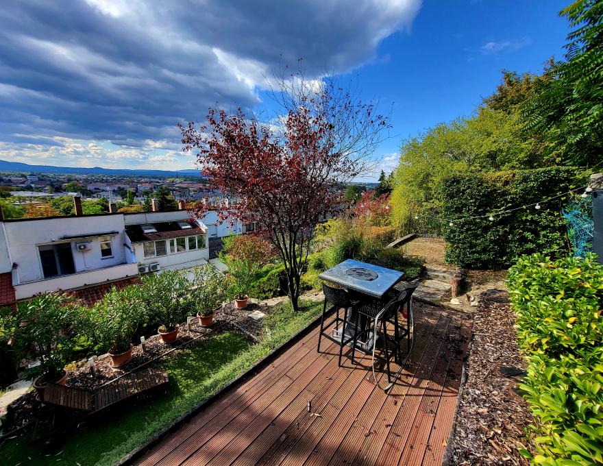 Ez az otthon azoknak ideális választás, akik egyszerre szeretnék élvezni a belváros közelségét és a zsákutca nyugalmát, a természet közelségét és az örök panoráma élményét.