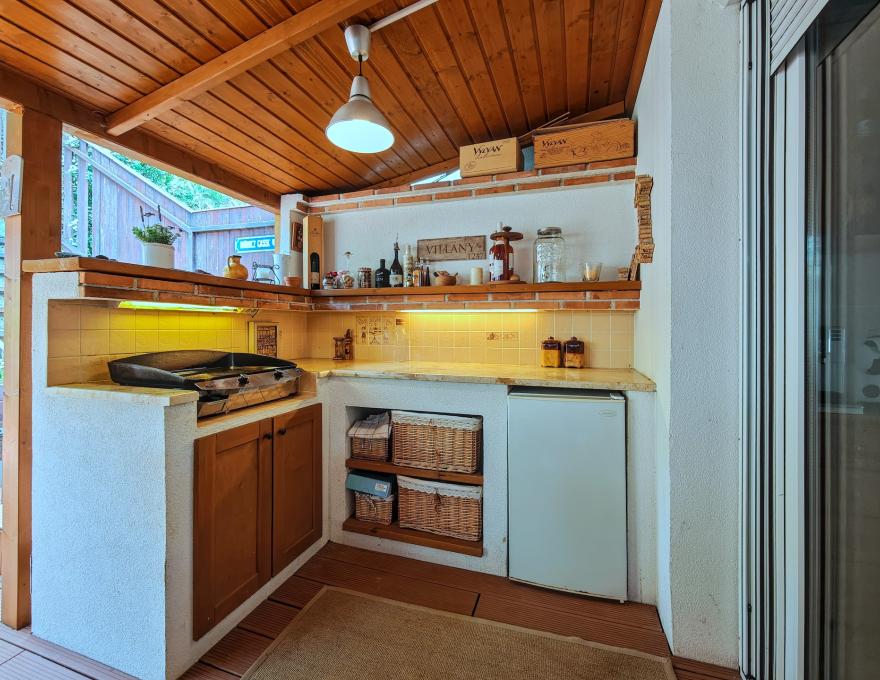 A nappali egy része igény szerint leválasztható, így további szoba is kialakítható. Innen közvetlen kijárat nyílik a nyári konyhával felszerelt teraszra.