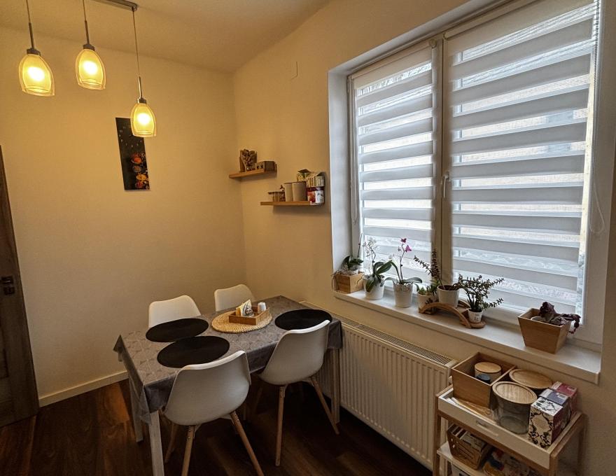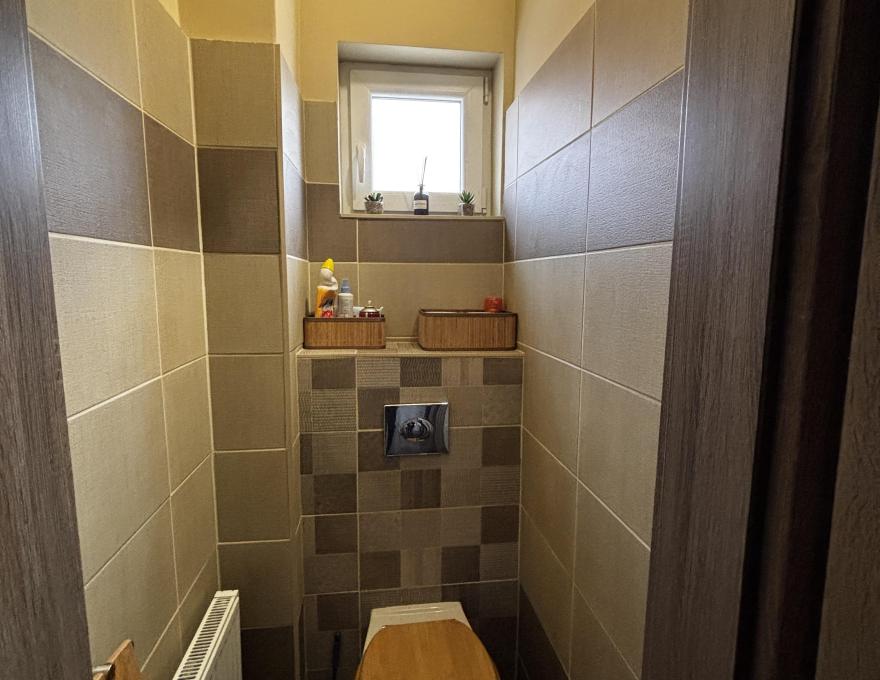 A bejárati ajtóból egy tágas előtérbe érkezünk, mely kiválóan alkalmas a család és a vendégek kényelmes fogadására. Innen nyílik egy kisebb szoba, ami jelenleg mosókonyhaként funkciónál, de zuhanyzóval és külön árammal ellátott így akár egy szauna kiépítése is megoldható.