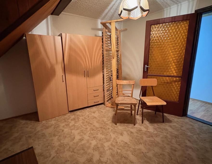 Az emeleti szinten további három hálószoba és egy fürdőszoba található, így minden családtagnak jut saját, nyugodt élettér, ezen a szinten egy nagyobb erkély is található.
